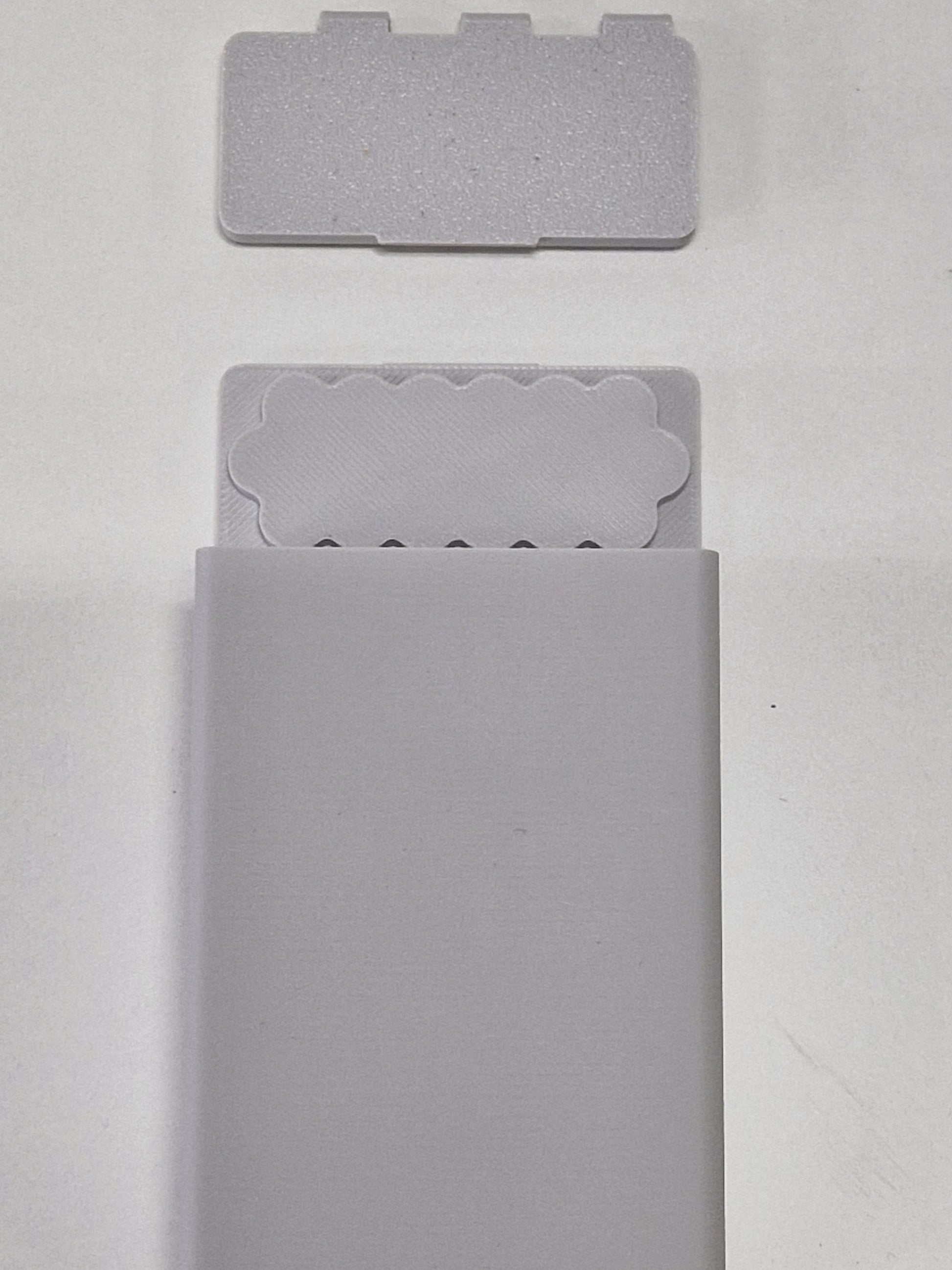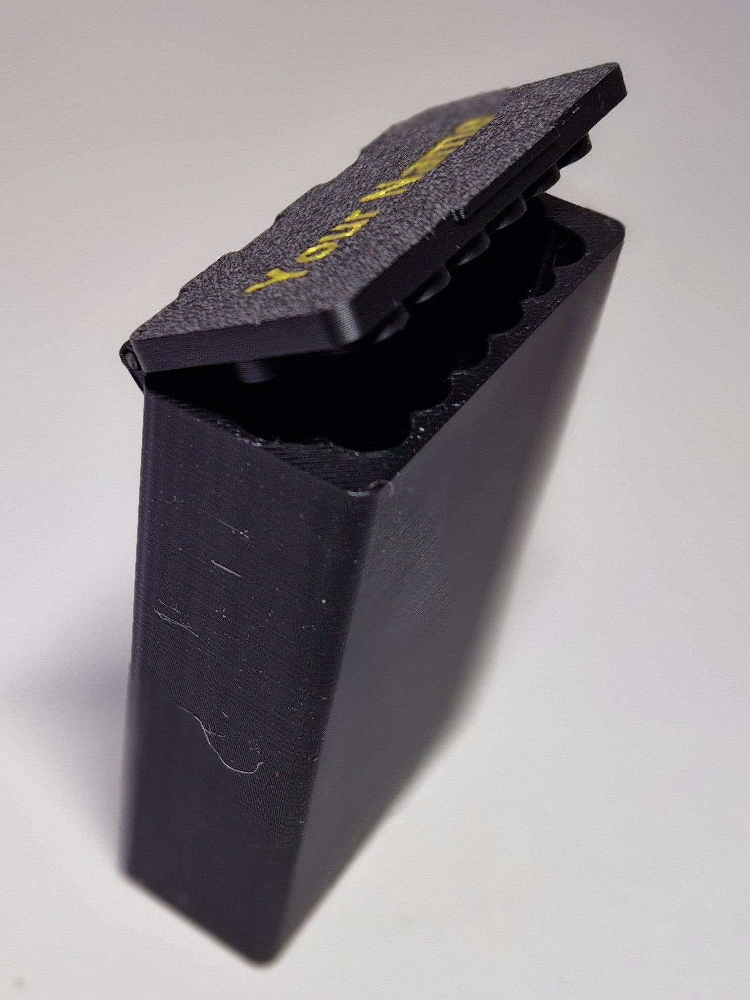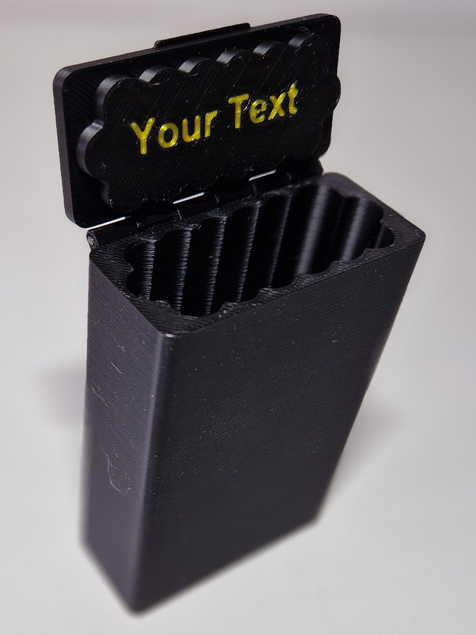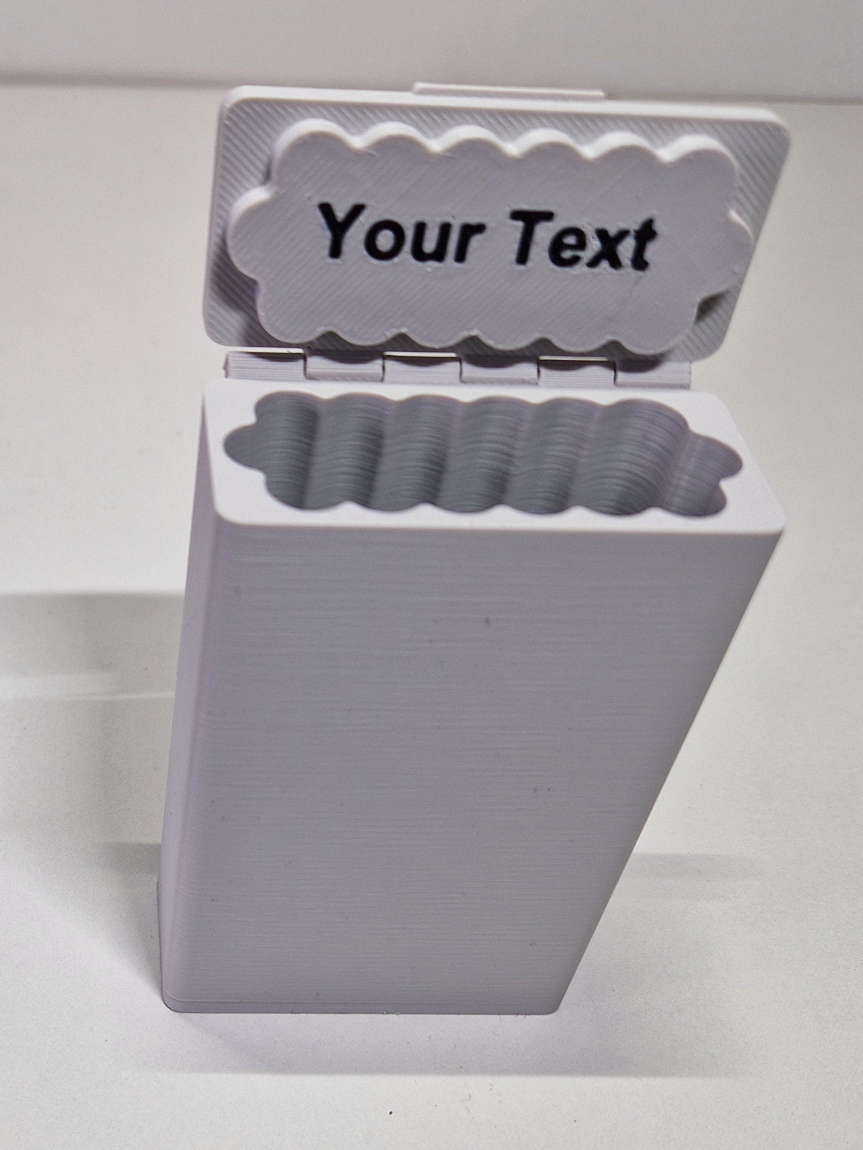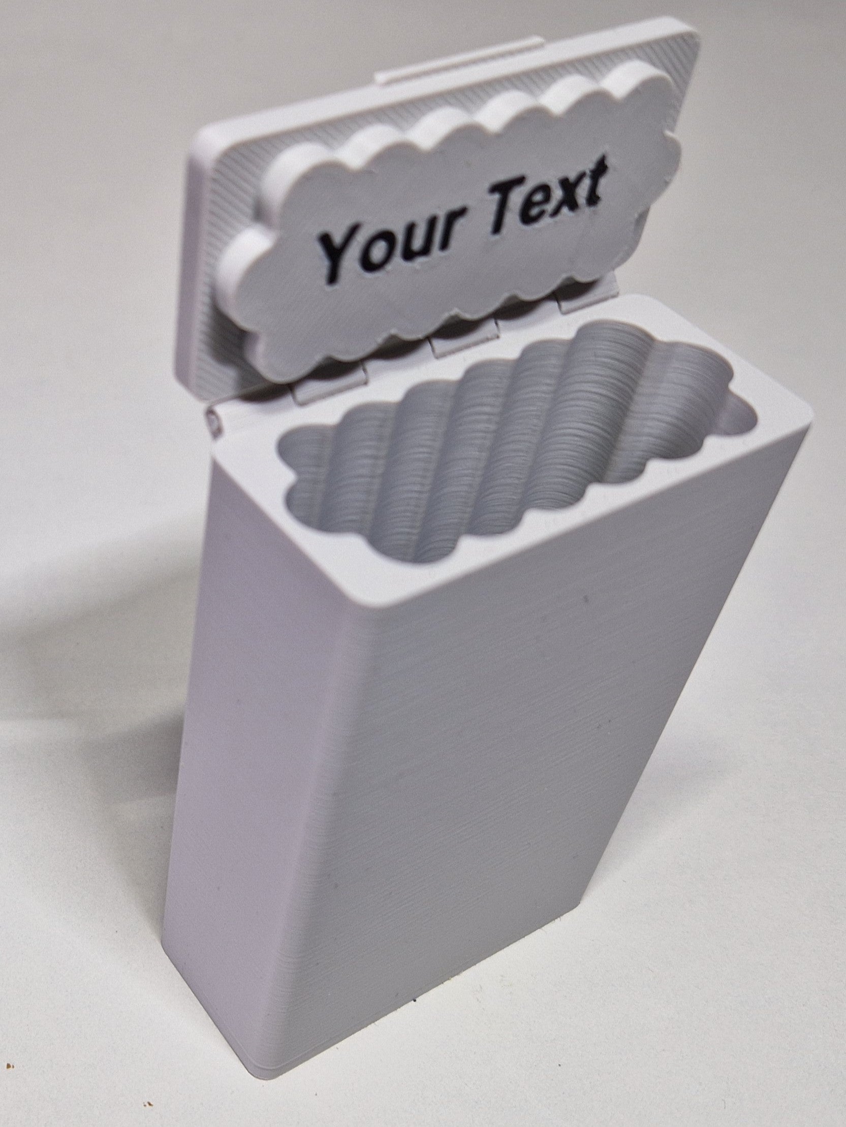 Sigaretten houder voor slechts 19 sigaretten met naam en persoonlijk boodschap aan de binnenkant. Bedoeld om mensen te helpen met stoppen met roken.